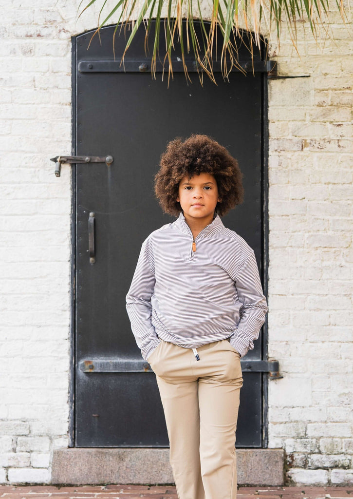 Collins Quarter Zip - Khaki Stripe