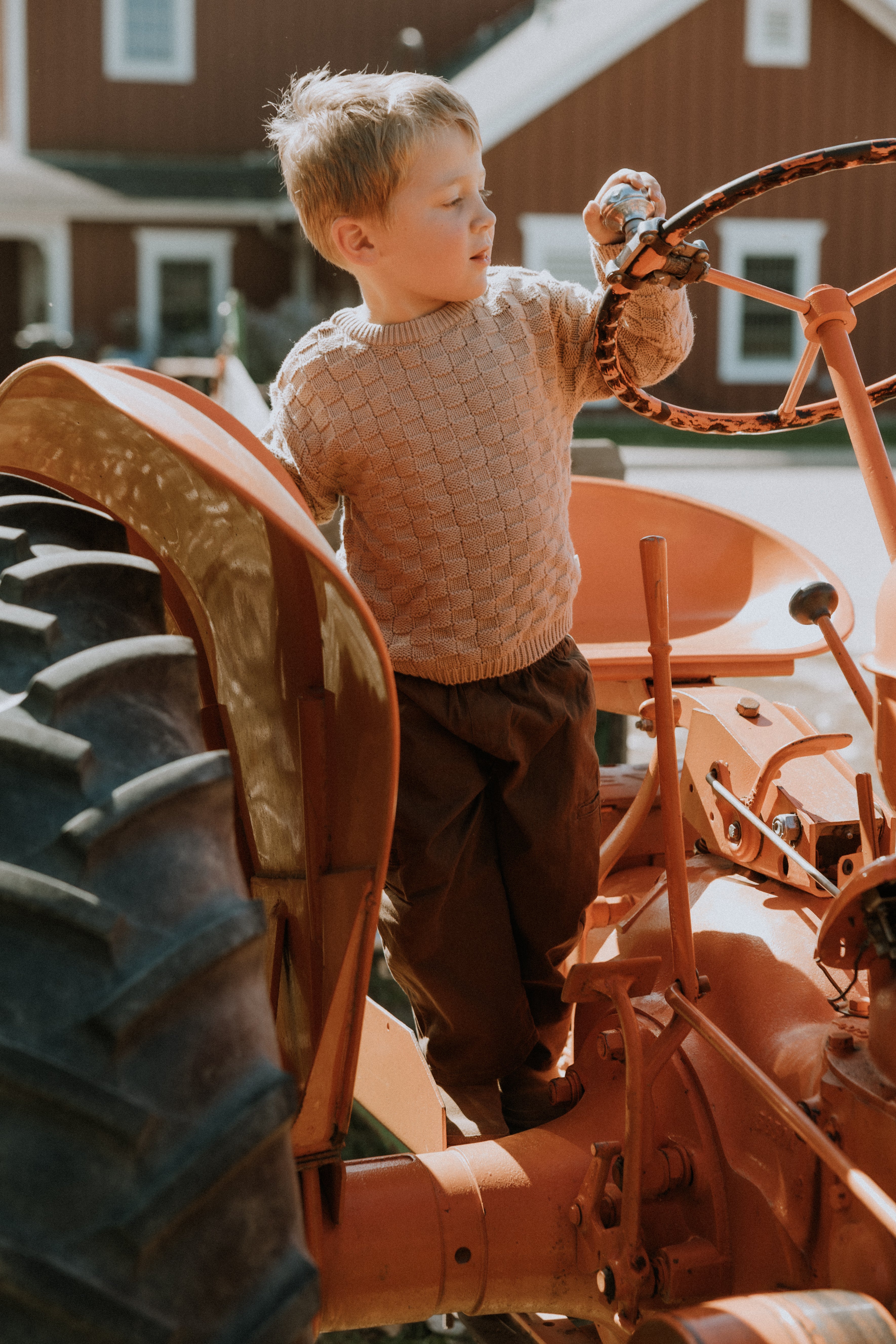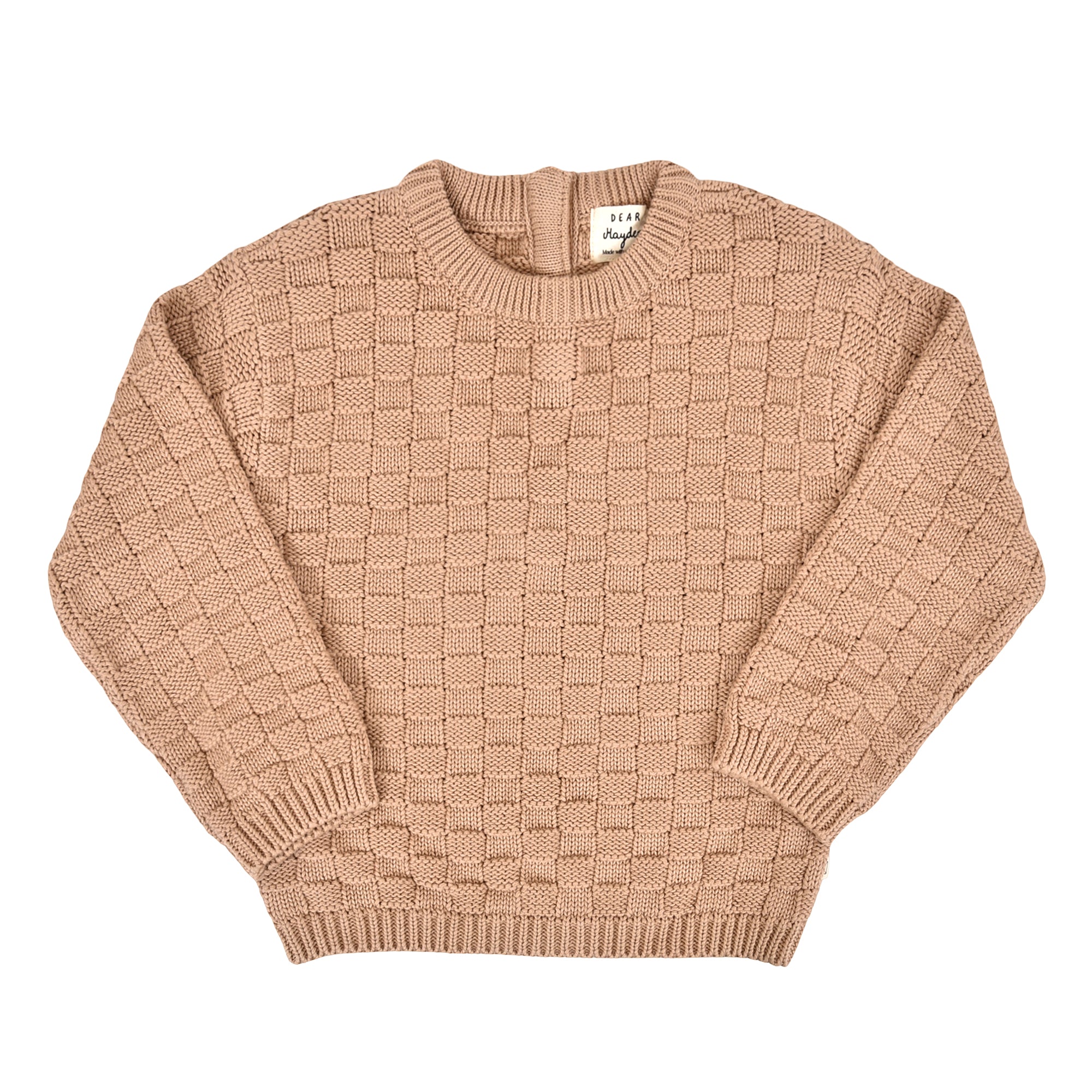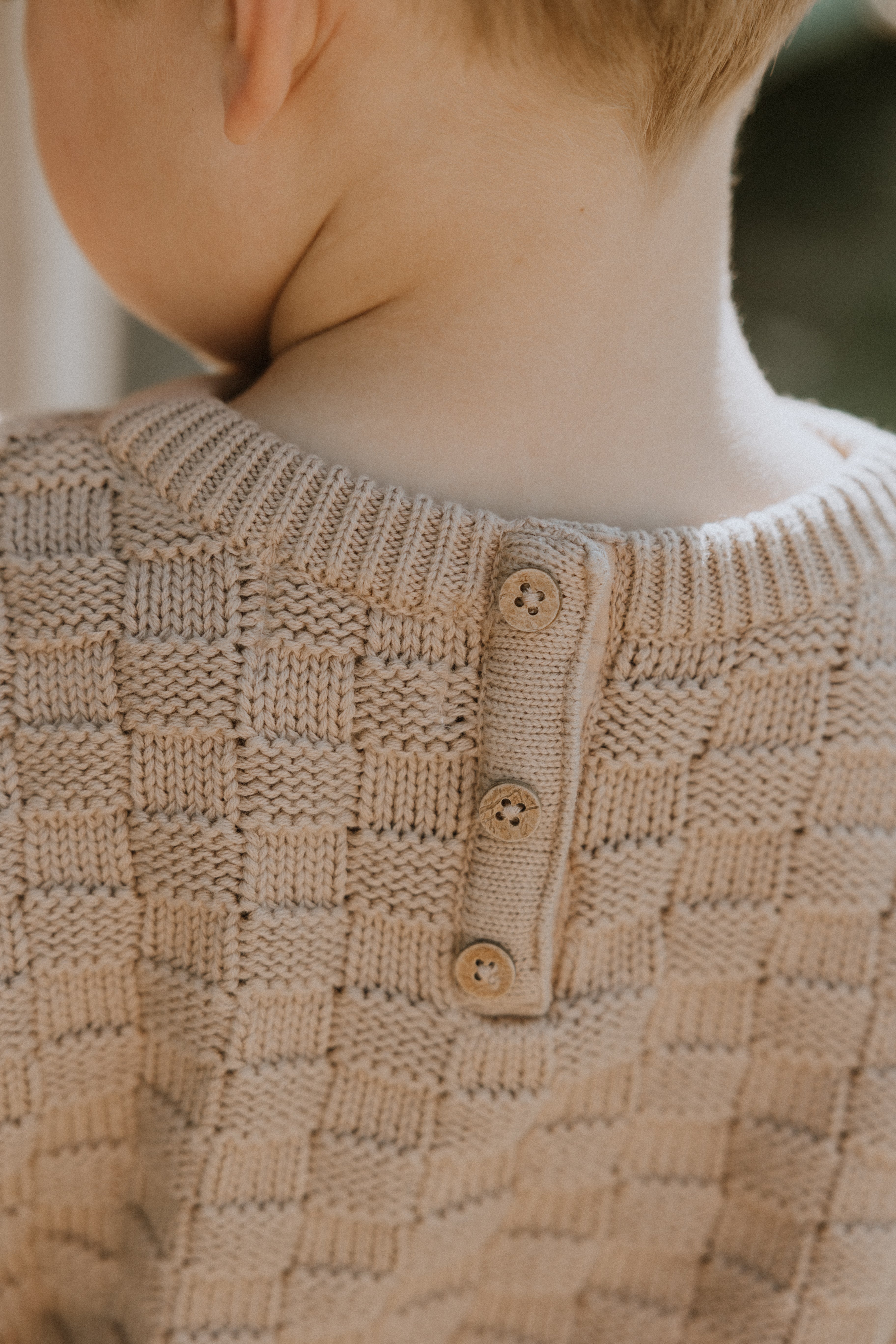 Sweater has magnetic buttons at the back of the neck for easy changing.
