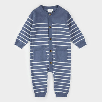 Striped Knit Playsuit - Denim Blue