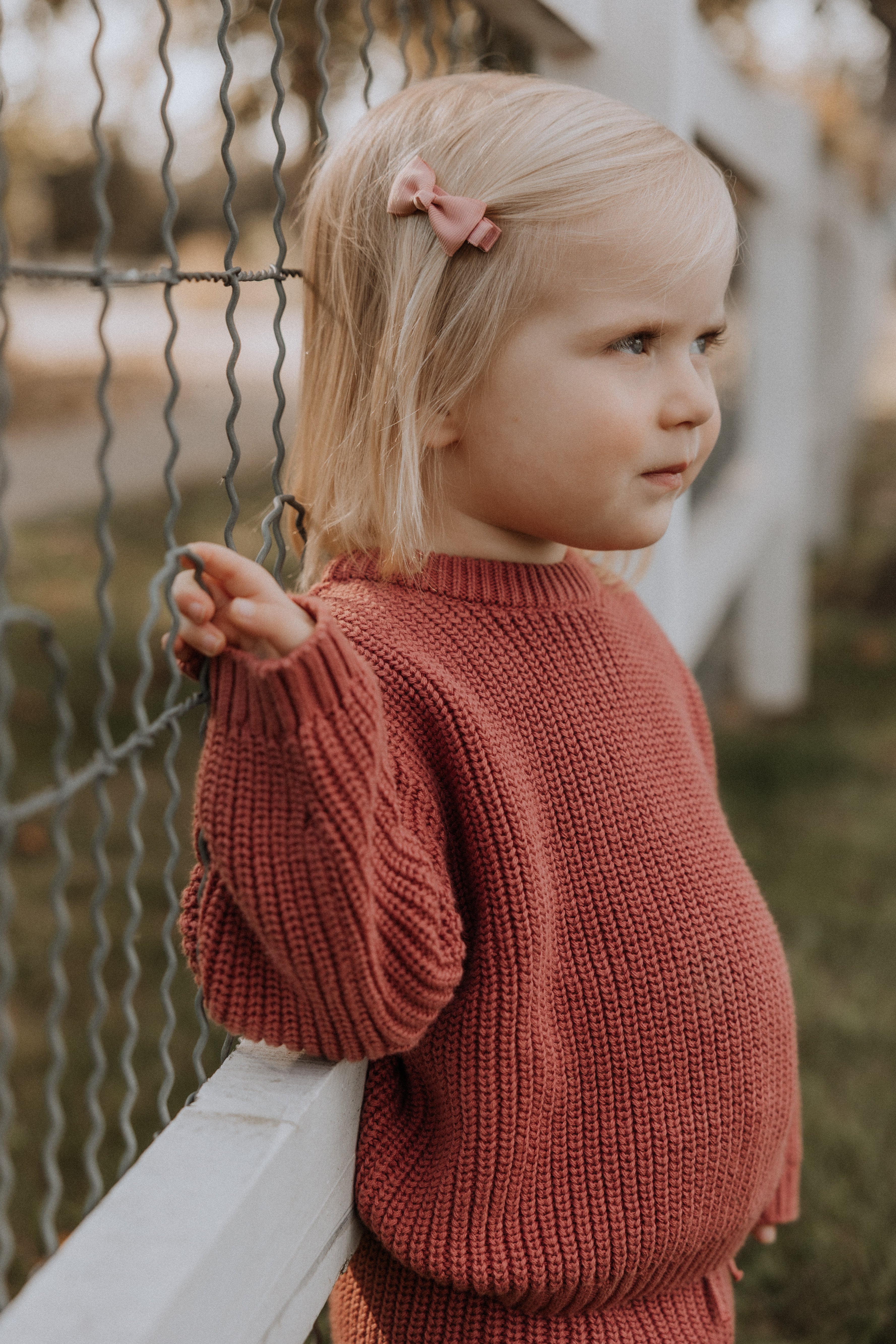 Sweater has magnetic buttons at the back of the neck for easy changing.