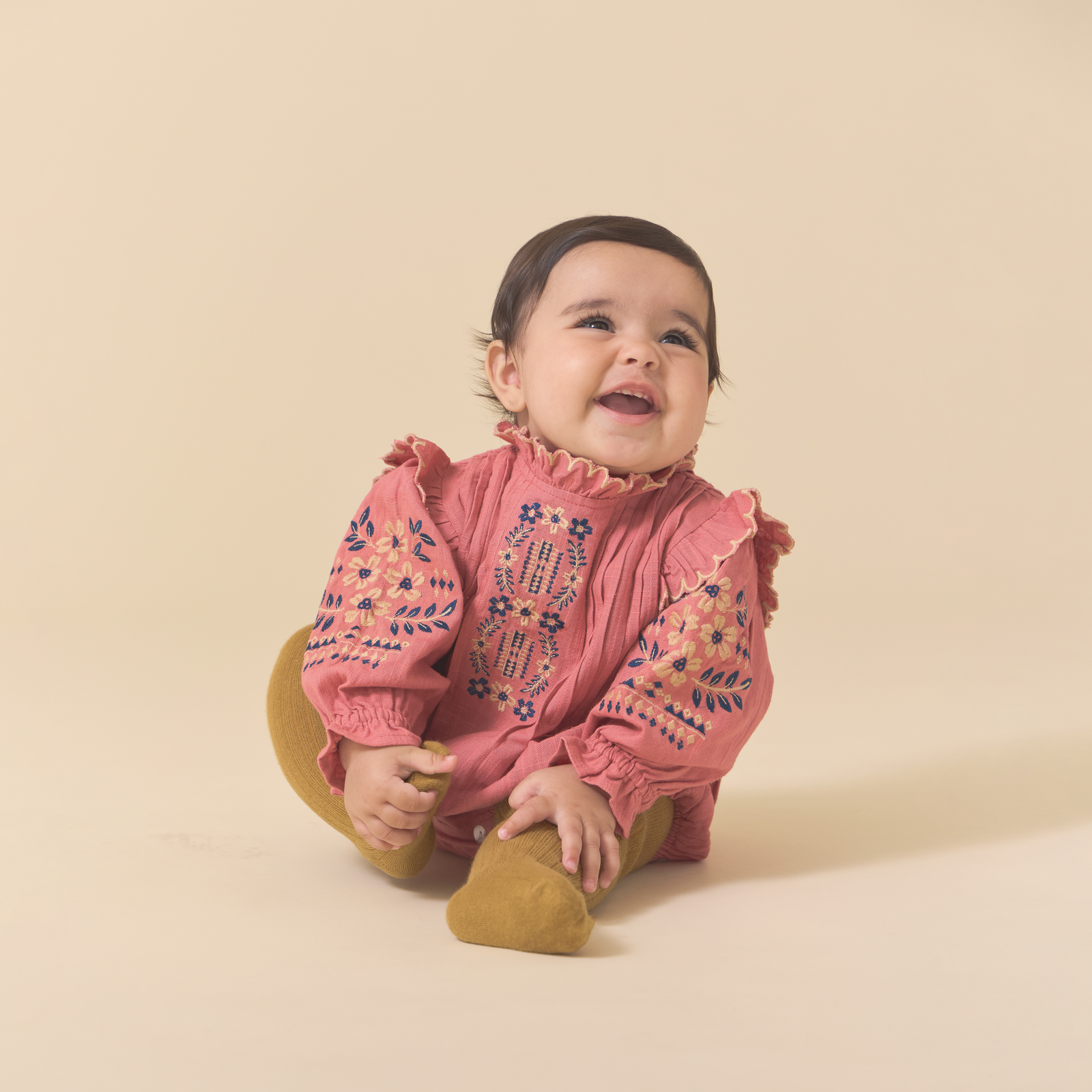 A baby-friendly take on our Marie Dress, this sweet romper features delicate pintucks and contrasting piping for a touch of charm. Designed with snap closures for easy changes and an easy fit for all-day comfort—perfect for matching with big sister.