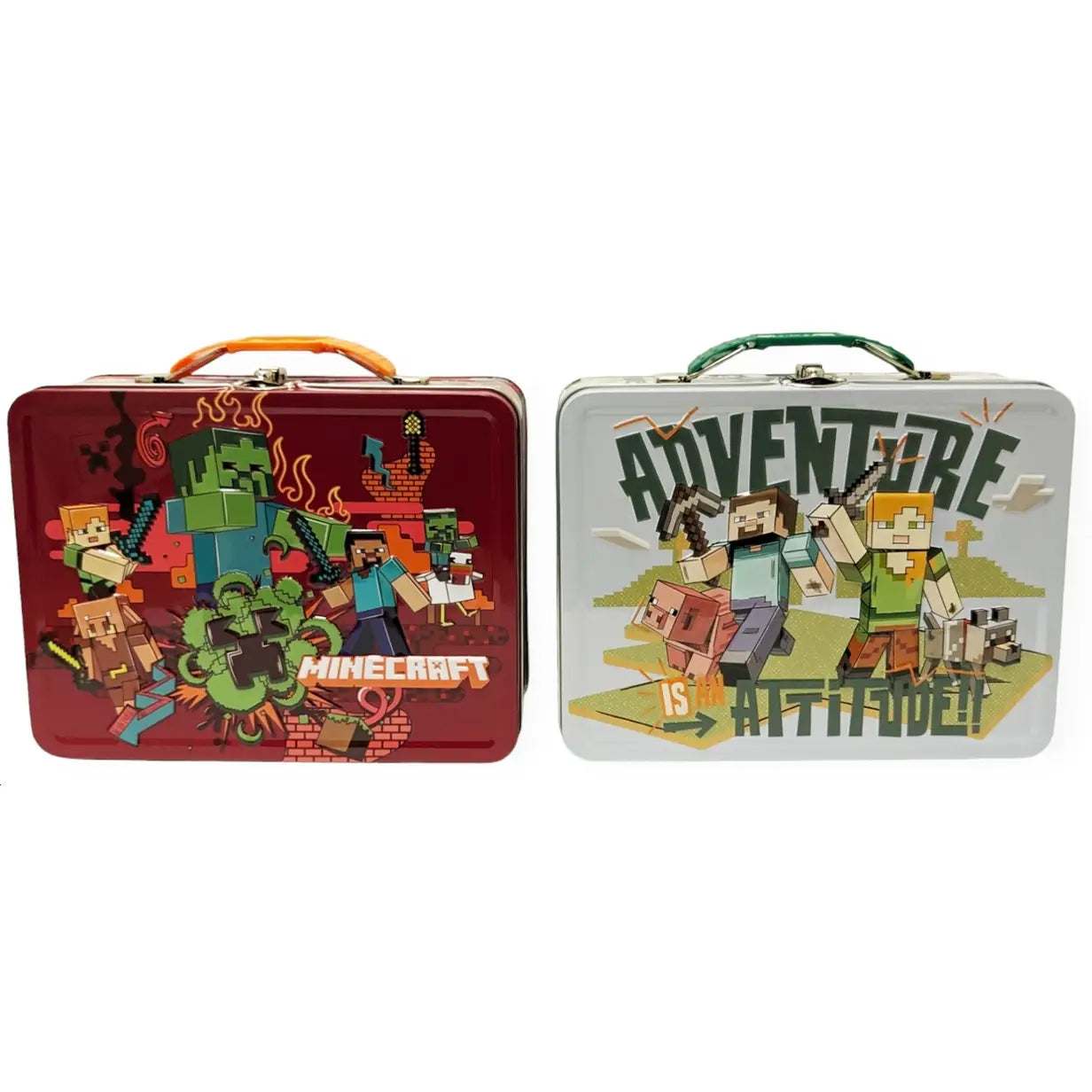 Kids will love this Minecraft™ tin carry-all! The licensed tin case features a colorful Minecraft Mobs on Fire design, making it perfect for holding lunches, snacks, small toys, pencils, crayons, and more.